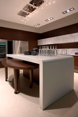 Применение искусственного акрилового камня в интерьере современной кухни позволяет сделать её не только стильной, но и функциональной, легкой в уборке, экологически безопасной. Такие свойства искусственного акрилового камня, как прочность, влагостойкость, а также гигиеничность, обуславливают широкое использование его в изготовлении столешниц и рабочих поверхностей кухонной мебели. Благодаря этим же качествам большую популярность приобрели мойки из искусственного акрилового камня. А бесшовная технология соединения отдельных деталей из этого материала позволяет объединить в единое целое столешницы и мойку, расположить под одной «крышей» варочную панель, стиральную и посудомоечную машины, шкафчики для посуды. Простор для фантазий дизайнера здесь безграничен, при этом уникальные свойства материала позволяют создавать элементы интерьера любой конфигурации и размера. Искусственный акриловый камень может украсить фасады и стены вашей кухни, которые при этом составят единый ансамбль с рабочими поверхностями и подоконником, также изготовленным из этого материала. Хорош искусственный акриловый камень и в качестве «фартука» для кухни, причем благодаря бесшовной технологии столешница может плавно перетекать в фартук безо всяких зазоров и щелей, что не только украсит ансамбль, но и существенно облегчит уборку. Устойчивость материала к влаге, температурным перепадам, химическим и механическим воздействиям, долговечность и прочность окраски, позволят вам любоваться вашей кухней долгие годы. А в случае повреждения поверхности из искусственного акрилового камня специалисты нашей фирмы легко восстановят её первоначальный вид. Столешницы и мойки, барные стойки и подоконники, стеновые панели и фартуки, фасады кухонь, столы, элементы декора и т. д. - все это мы можем изготовить для вас по индивидуальным и типовым проектам в комплекте или отдельными модулями. Цветовая палитра наших материалов удовлетворит самый взыскательный вкус. Мы работаем с ведущими мировыми химическими концернами - производителями искусственного акрилового камня: DuPont, Samsung Cheil Indastries и LG Chem, а значит, с материалами только самого высокого качества. Наша фирма гарантирует вам высокое качество работ, индивидуальный подход, быстрые сроки выполнения заказа. |